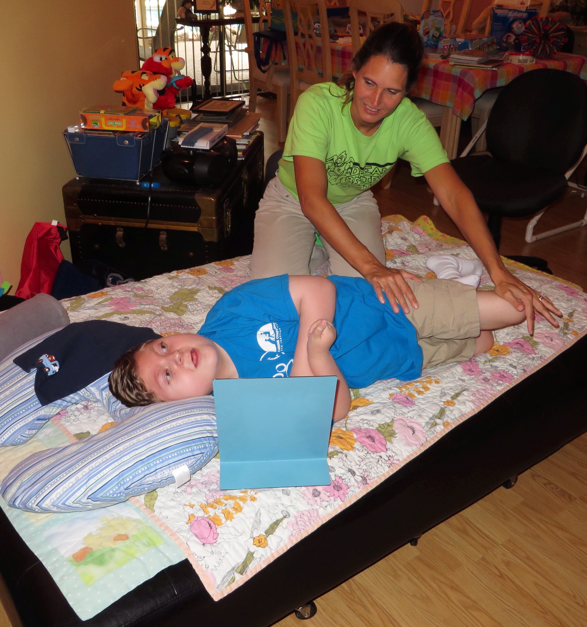 It makes me feel like a failure. He needs to be wearing his Dyna-Splints every day, and it’s something that somehow doesn’t get done. We should probably be spending more time stretching his legs and arms. We should be getting him on his gait trainer. He did do better on that in this reassessment.